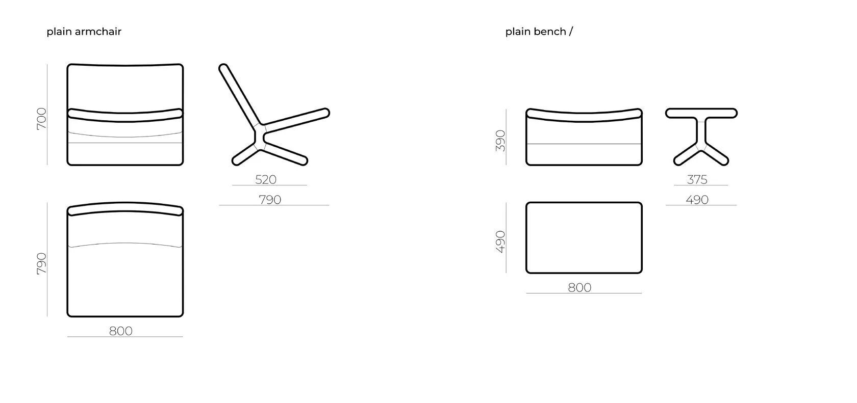Габаритные размеры банкетки: 800x490х390 mm