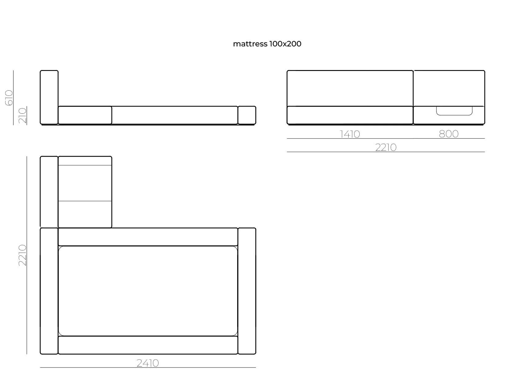 Спальное место: 1000х2000 mm